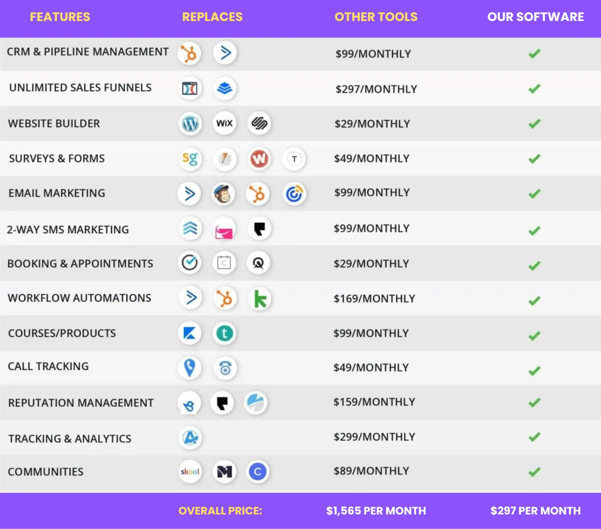We integrate directly with Stripe so you can collect payments on websites, funnels, and even when someone books an appointment.